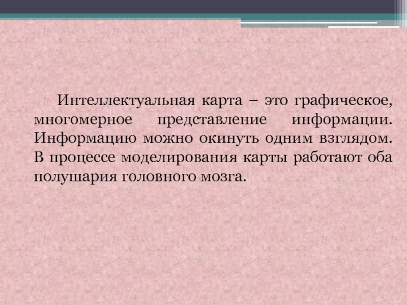 Слайд 7 Интеллектуальная карта – это графическое, многомерное представление информации.