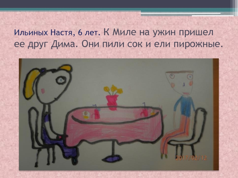 Слайд 23Ильиных Настя, 6 лет. К Миле на ужин пришел ее друг