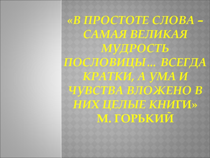 Слайд 2«В ПРОСТОТЕ СЛОВА – САМАЯ ВЕЛИКАЯ МУДРОСТЬ ПОСЛОВИЦЫ… ВСЕГДА КРАТКИ, А