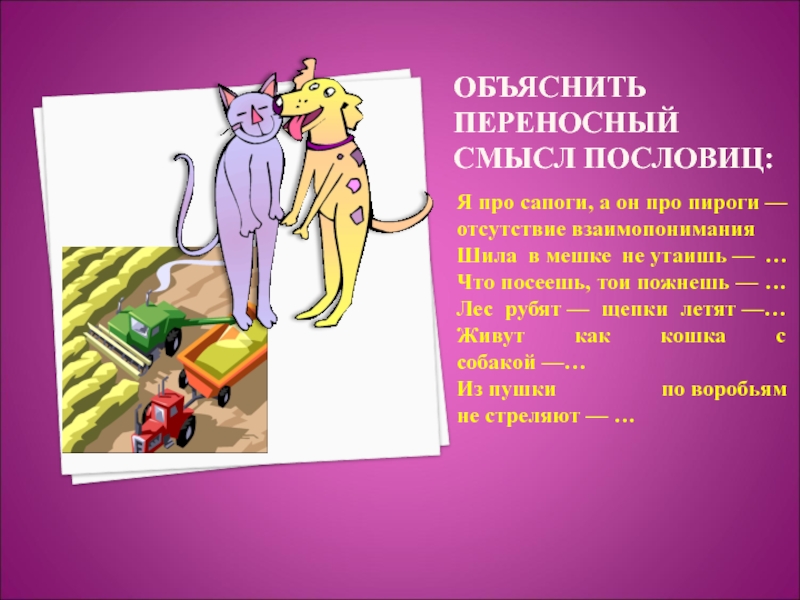 Слайд 33ОБЪЯСНИТЬ ПЕРЕНОСНЫЙ СМЫСЛ ПОСЛОВИЦ: