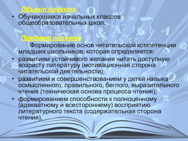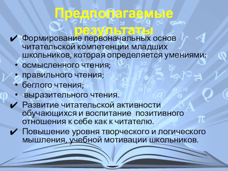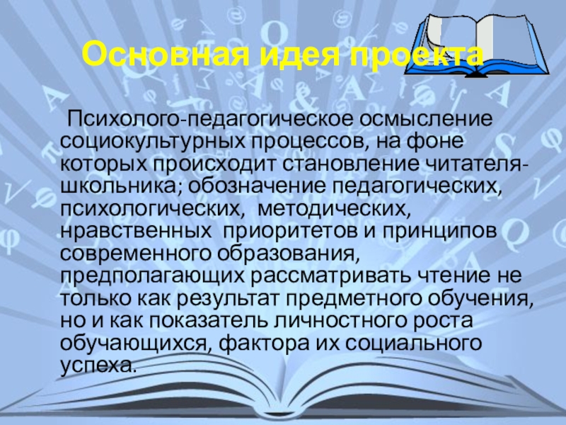 читателя-школьника; обозначение педагогических, психологических, методических, нравственных приоритетов и принципов современного образования, предполагающих рассматривать чтение не только как результат предметного обучения, но и как показатель личностного роста обучающихся, фактора их социального успеха.