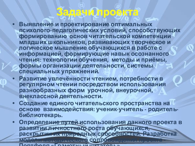 Определение путей использования данного проекта в развитии личностного роста обучающихся, раскрытии их природных способностей. Разработка модели методического сопровождения проекта - Портфеля «Грамотный читатель».