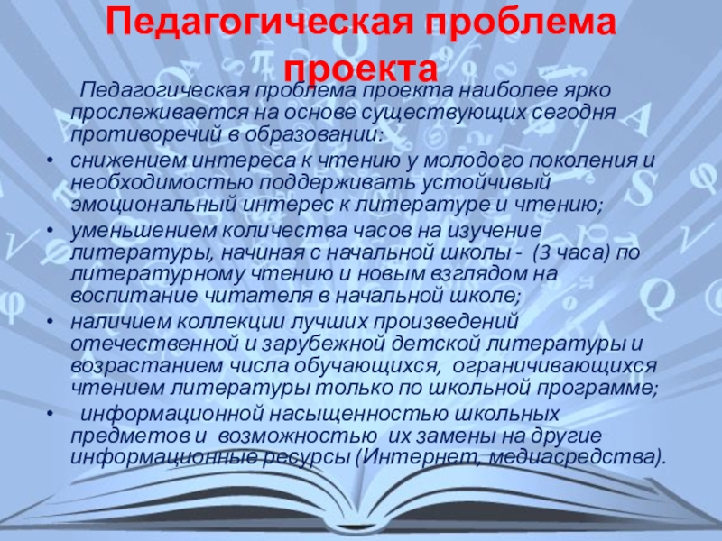 Педагогическая проблема проекта наиболее ярко прослеживается на основе существующих