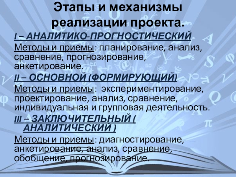 Методы и приемы: диагностирование, анкетирование, анализ, сравнение, обобщение, прогнозирование.