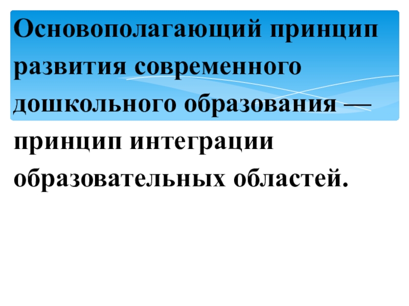 Слайд 3Основополагающий принцип развития современного дошкольного образования — принцип интеграции образовательных областей.