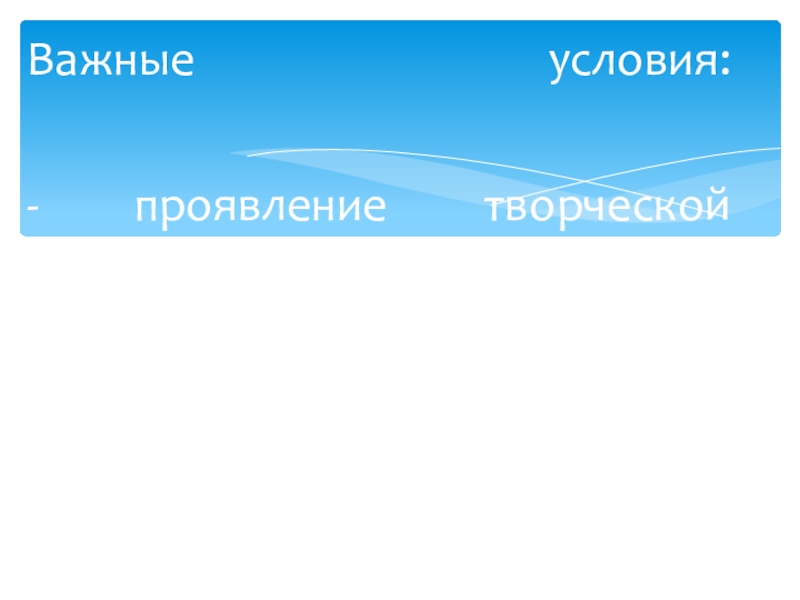 Важные условия: - проявление творческой активности педагога;- учет тематического мероприятия с реализацией национального регионального компонента.
