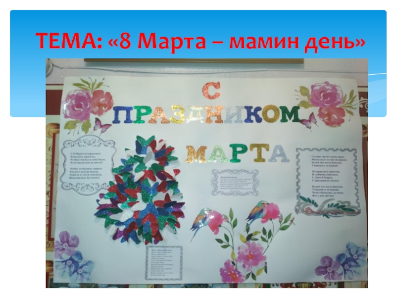Слайд 17 ТЕМА: «8 Марта – мамин день»