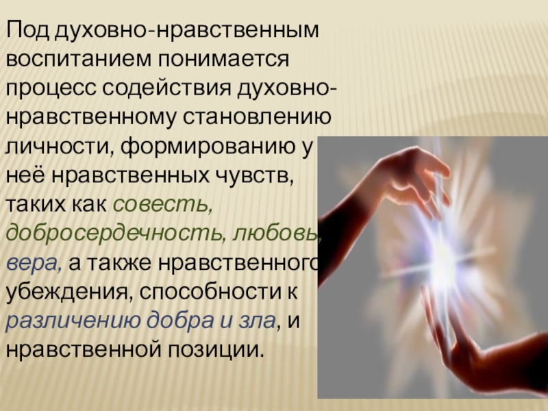 Слайд 2Под духовно-нравственным воспитанием понимается процесс содействия духовно-нравственному становлению личности, формированию у