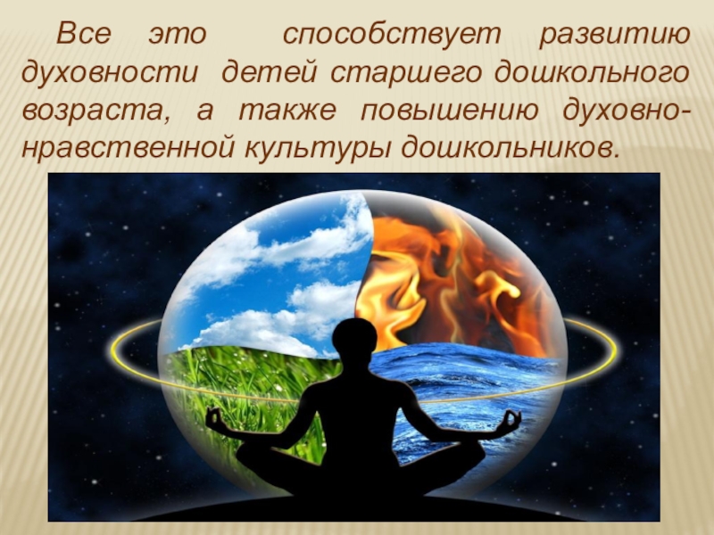 Слайд 14Все это способствует развитию духовности детей старшего дошкольного возраста, а также