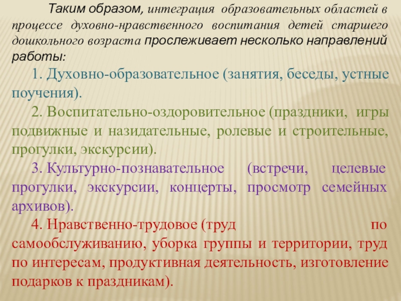 Слайд 13 Таким образом, интеграция образовательных областей в процессе духовно-нравственного
