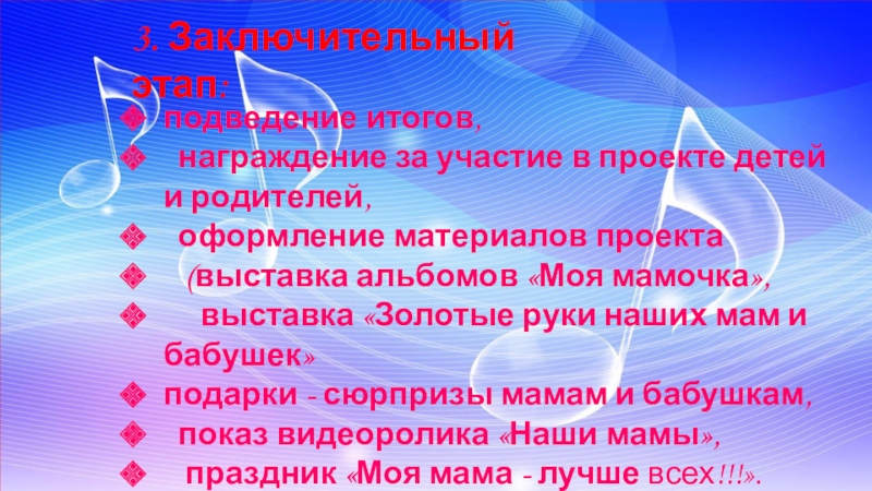 реализации проекта «Мама – самый лучший друг»