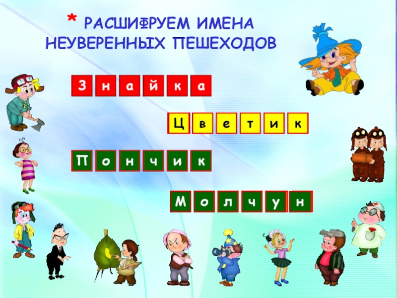 Слайд 5* РАСШИФРУЕМ ИМЕНА НЕУВЕРЕННЫХ ПЕШЕХОДОВ