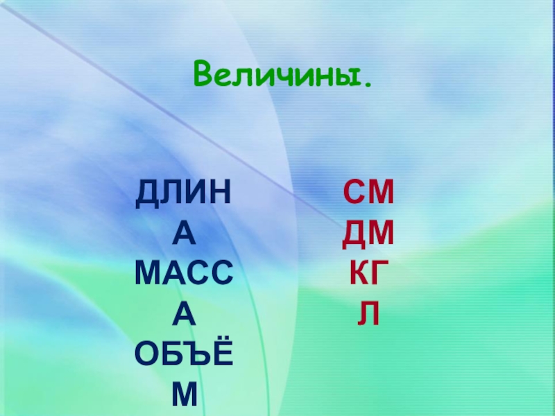 Величины.ДЛИНАМАССАОБЪЁМСМ  ДМКГЛ
