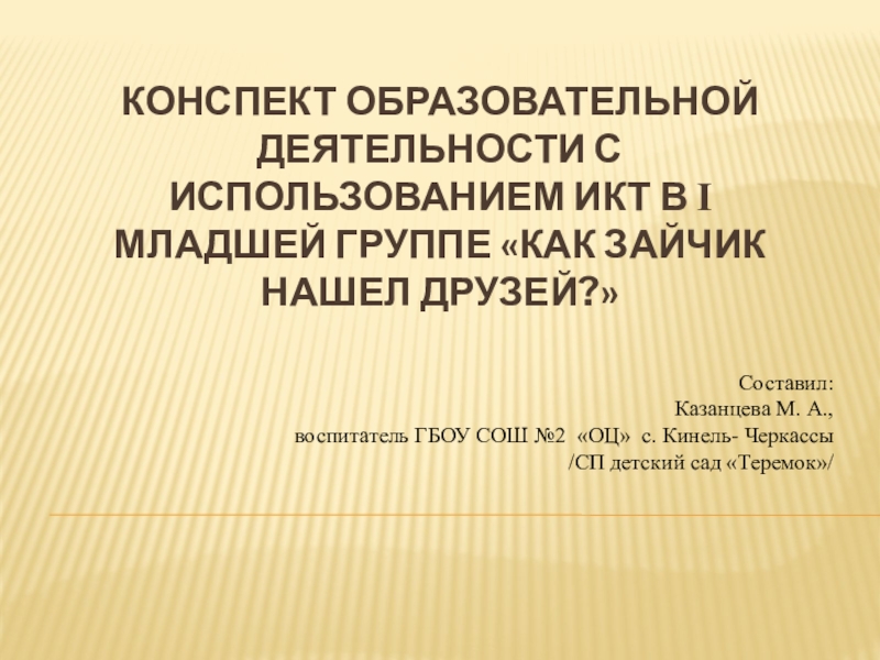 воспитатель ГБОУ СОШ №2 «ОЦ» с. Кинель- Черкассы /СП детский сад «Теремок»/