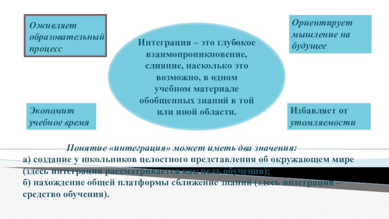 а) создание у школьников целостного представления об окружающем мире (здесь интеграция рассматривается как цель обучения);