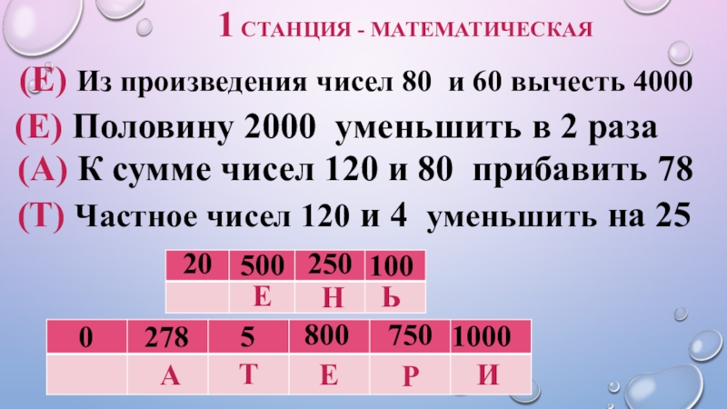 (Е) Половину 2000 уменьшить в 2 раза