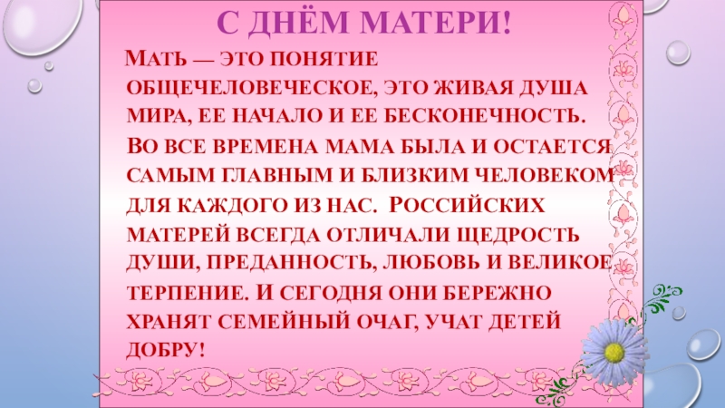 она - остается самым главным и близким человеком для каждого из нас.