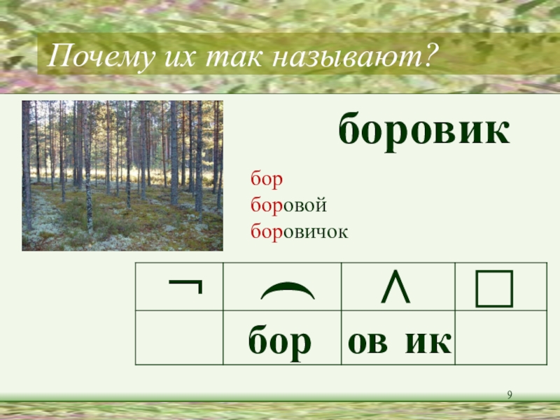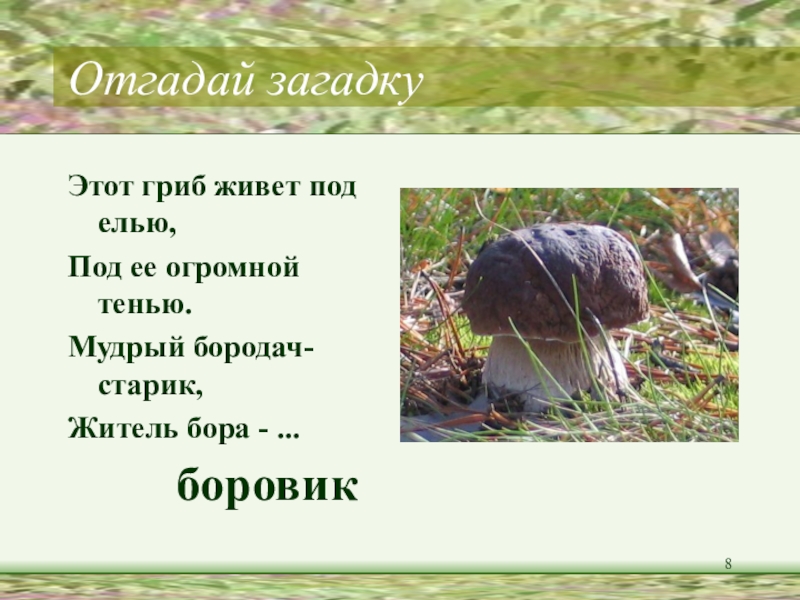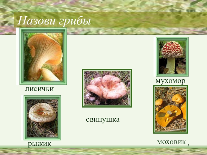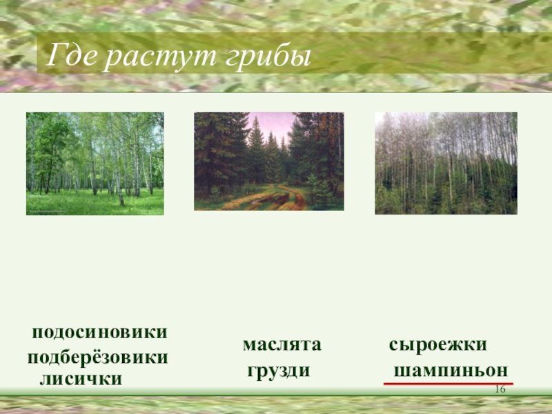 Найди слова-названия грибов, разбери их по составу.