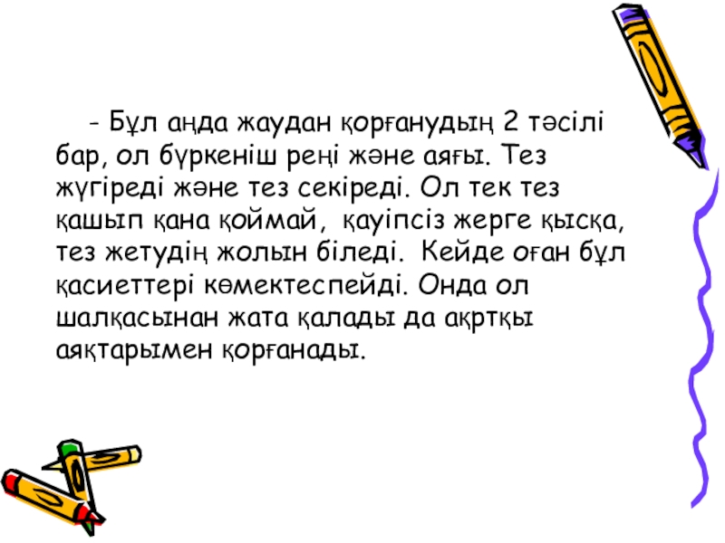 Слайд 16 - Бұл аңда жаудан қорғанудың 2 тәсілі