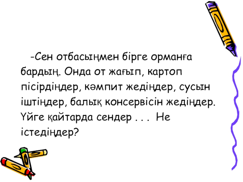 Слайд 22 -Бір күні досым екеуміз орманға бардық. Қыста