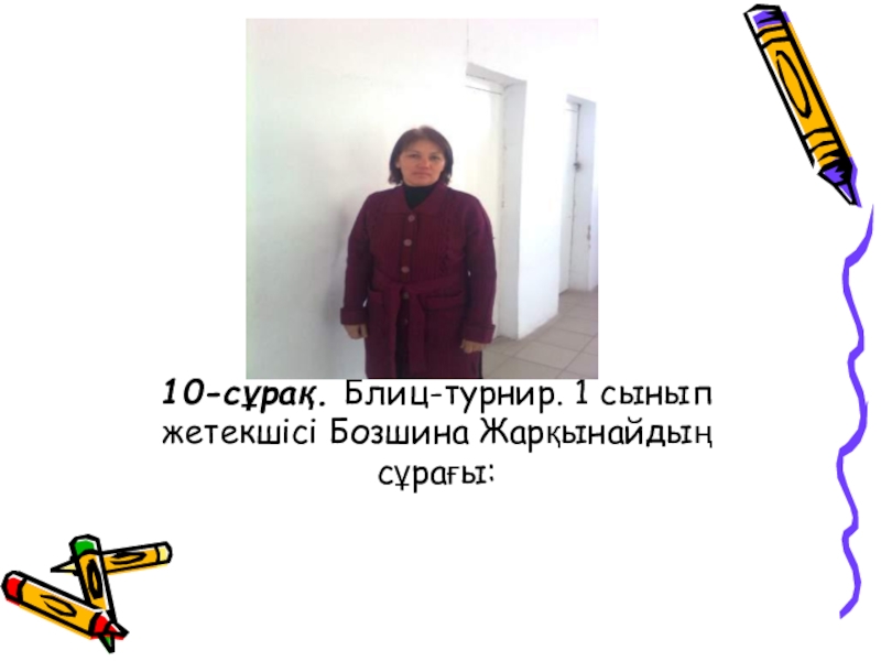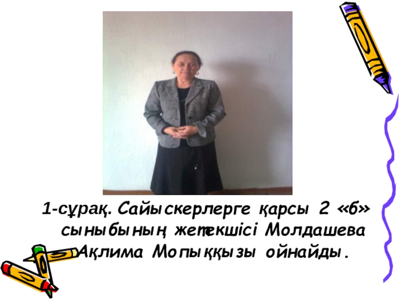 Слайд 31-сұрақ. Сайыскерлерге қарсы 2 «б» сыныбының жетекшісі Молдашева Ақлима Мопыққызы