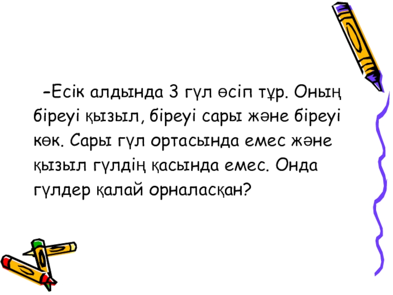 Слайд 34 -Есік алдында 3 гүл өсіп тұр. Оның