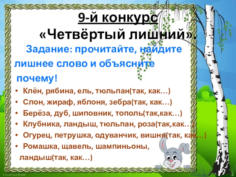 Клён, рябина, ель, тюльпан(так, как…)