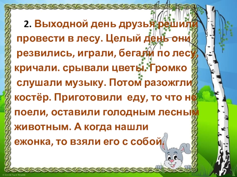 Слайд 10 2. Выходной день друзья решили