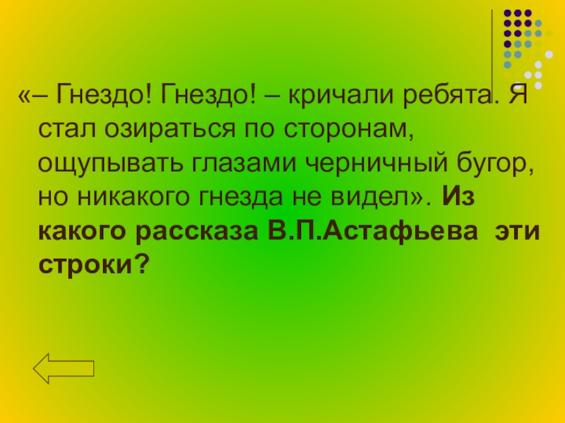 ощупывать глазами черничный бугор, но никакого гнезда не видел». Из какого рассказа В.П.Астафьева эти строки?