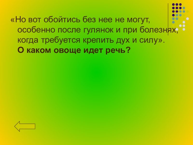 при болезнях, когда требуется крепить дух и силу». О каком овоще идет речь?