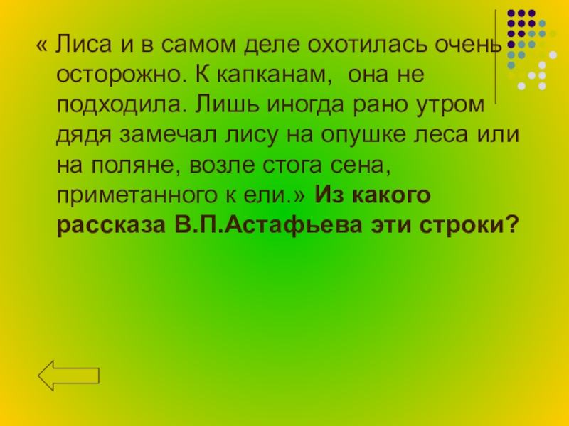 она не подходила. Лишь иногда рано утром дядя замечал лису на опушке леса или на поляне, возле стога сена, приметанного к ели.» Из какого рассказа В.П.Астафьева эти строки?