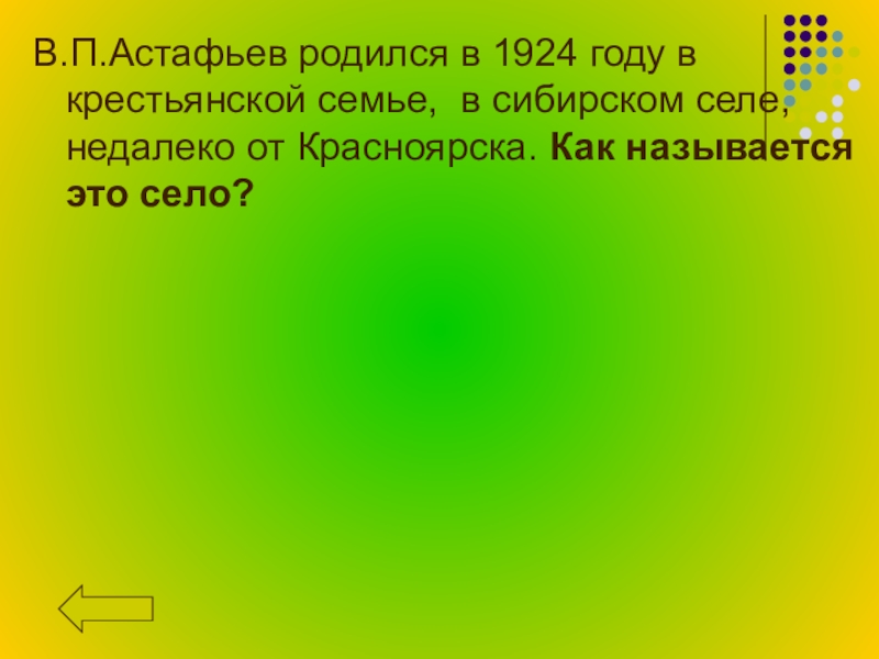 В.П.Астафьев родился в 1924 году в крестьянской семье, в сибирском селе, недалеко от Красноярска. Как называется это