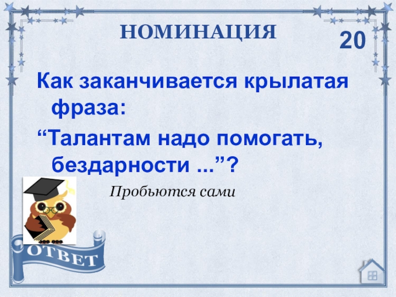 Это сайт презентаций, где можно хранить и обмениваться своими презентациями, докладами, проектами, шаблонами в формате PowerPoint с другими пользователями. Мы помогаем школьникам, студентам, учителям, преподавателям хранить и обмениваться учебными материалами.