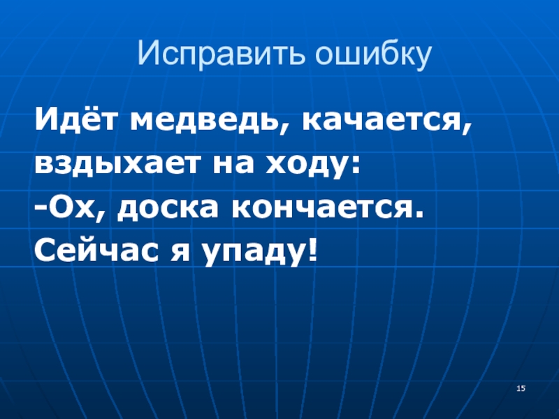 Исправить ошибку Идёт медведь, качается, вздыхает на ходу:-Ох, доска кончается.Сейчас я упаду!