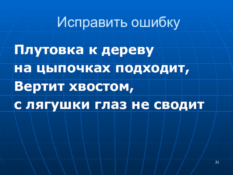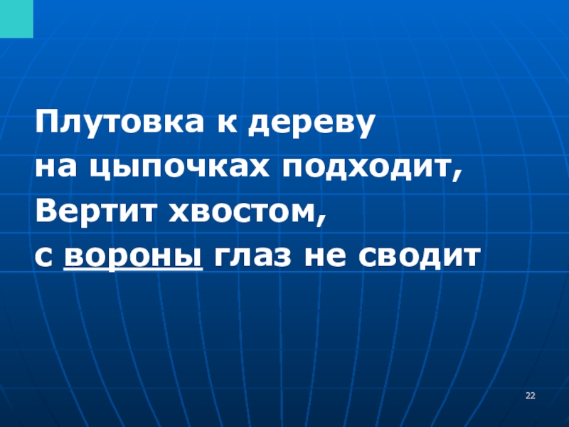 Исправить ошибкуПлутовка к деревуна цыпочках подходит,Вертит хвостом, с лягушки глаз не сводит