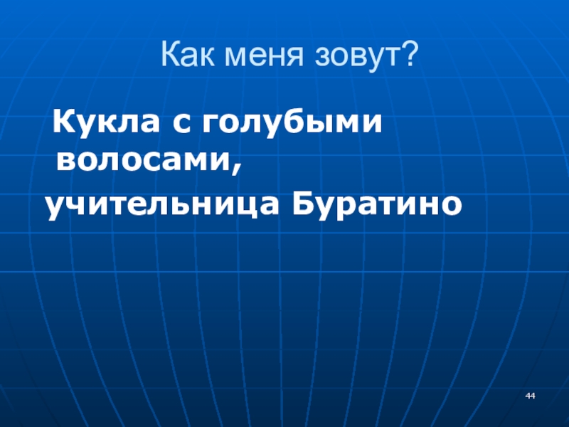 Как меня зовут? Кукла с голубыми волосами, учительница Буратино
