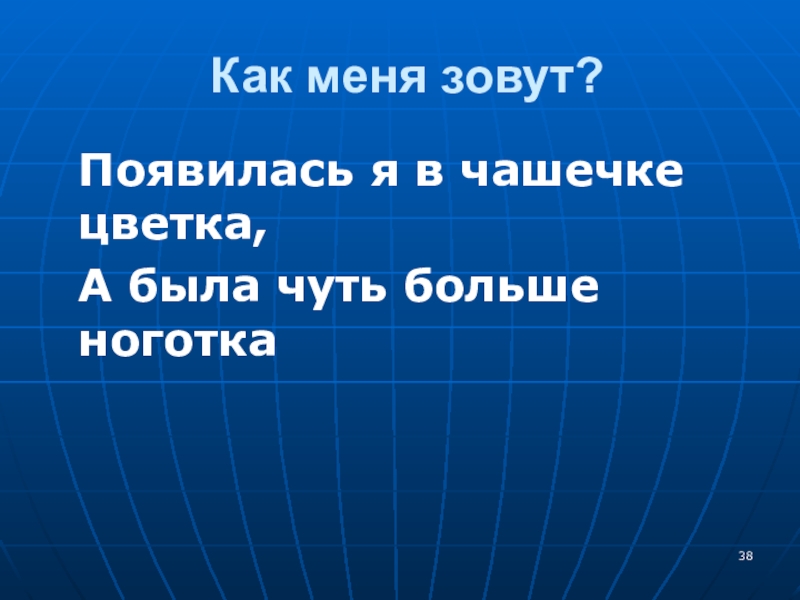 Как меня зовут? Появилась я в чашечке цветка, А была чуть больше ноготка