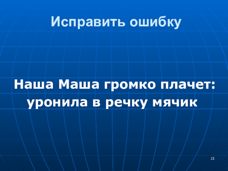 Исправить ошибку Наша Маша громко плачет:  уронила в речку мячик