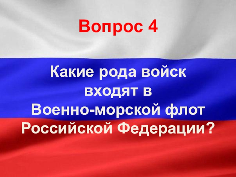 Вопрос 4Какие рода войск входят в Военно-морской флотРоссийской Федерации?