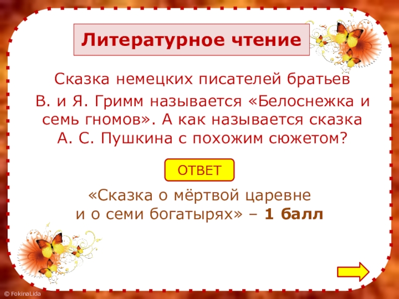 и о семи богатырях» – 1 балл