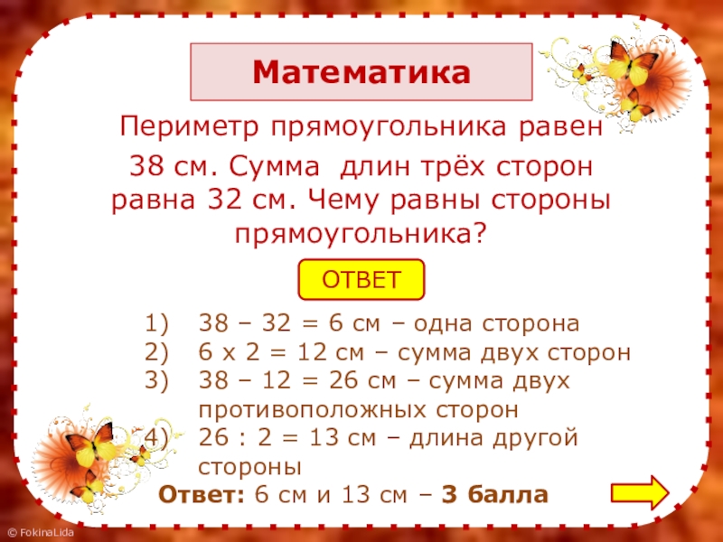 38 – 32 = 6 см – одна сторона
