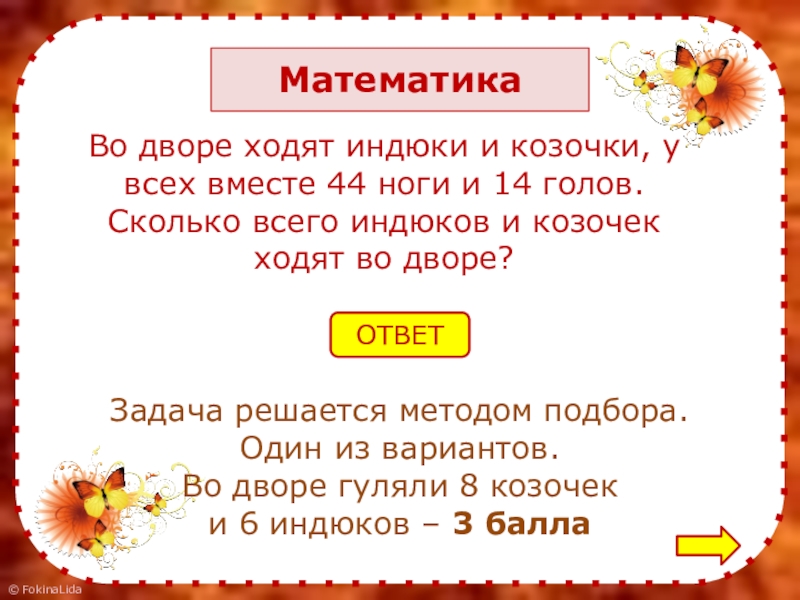 и 6 индюков – 3 балла