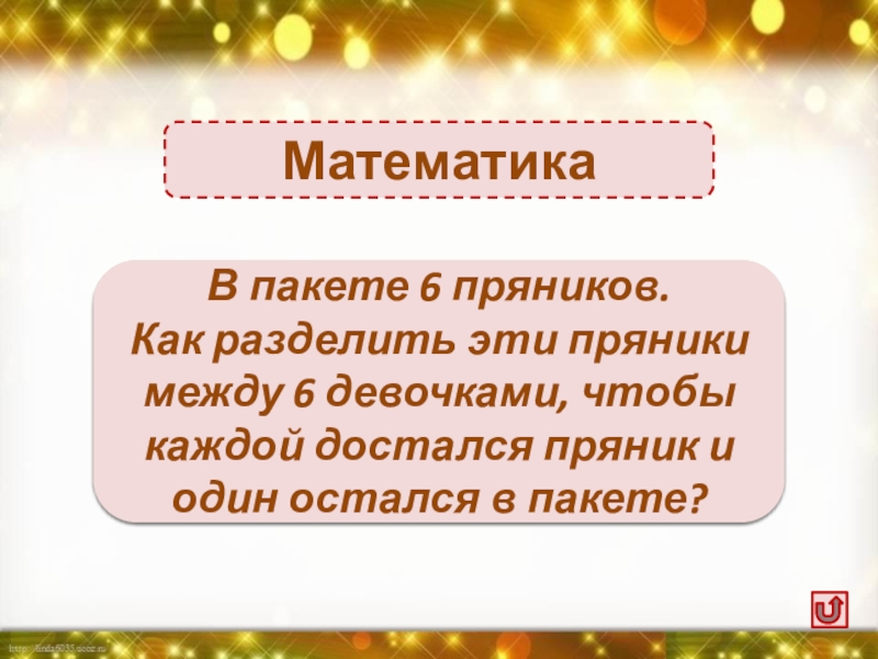 Как разделить эти пряники между 6 девочками, чтобы каждой достался пряник и один остался в пакете?