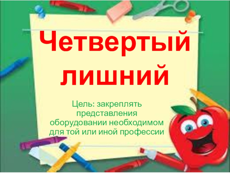 Четвертый лишнийЦель: закреплять представления оборудовании необходимом для той или иной профессии