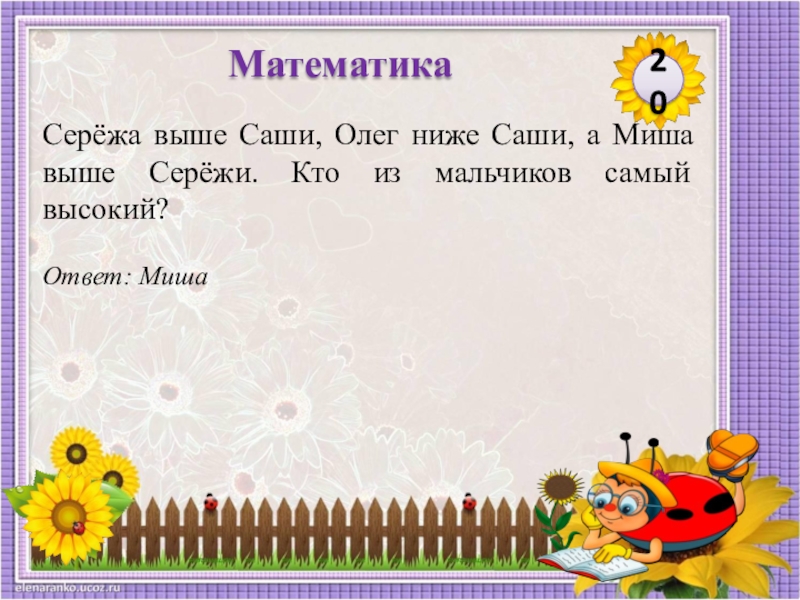 Это сайт презентаций, где можно хранить и обмениваться своими презентациями, докладами, проектами, шаблонами в формате PowerPoint с другими пользователями. Мы помогаем школьникам, студентам, учителям, преподавателям хранить и обмениваться учебными материалами.