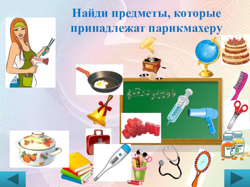 Слайд 3Найди предметы, которые принадлежат парикмахеру