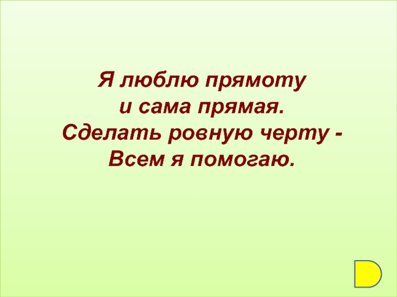 Слайд 12Я люблю прямоту и сама прямая. Сделать ровную черту - Всем я помогаю.