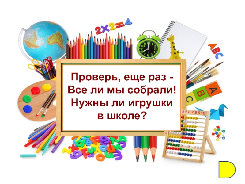 Проверь, еще раз - Все ли мы собрали! Нужны ли игрушки  в школе?