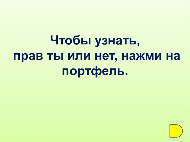 Слайд 20Чтобы узнать, прав ты или нет, нажми на портфель.