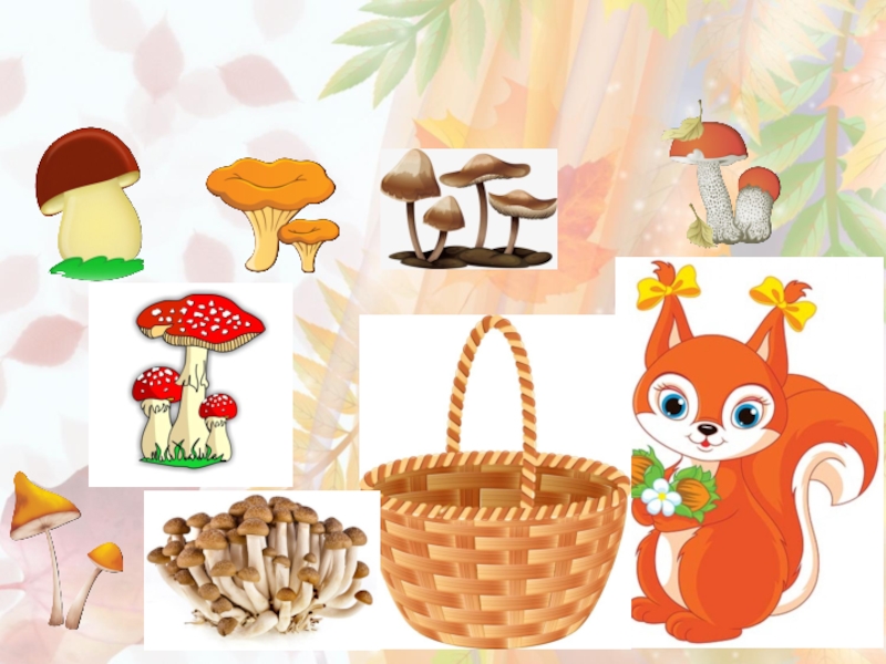 Слайд 3Помоги белочке собрать грибы в корзинку